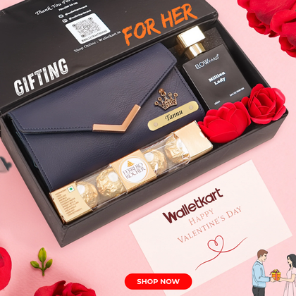 Valentine Special Personalised Gift for Girlfriend Wife – Women's Clutch, Perfume & Chocolates