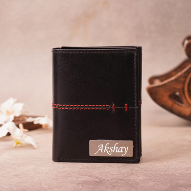 Customised Genuine Leather Men’s Wallet & Metal Keychain & Pen – (STYLE ID #32)