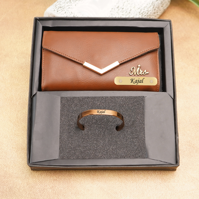 Personalized Leather Name Clutch & Bracelet Combo | Elegant Gift for Women like Girlfriend | Wife