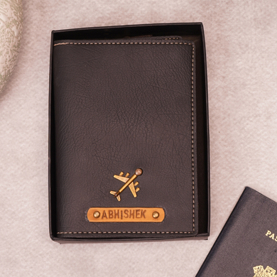 Premium Personalized Passport Cover with Name Engarved on Golden Plate