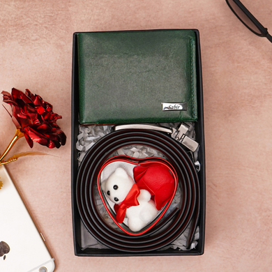 Personalized Handmade Genuine Leather Name Wallet for Men on birthday & Anniversary ,Belt & Teddy Bear Combo| Custom Engraved Wallet with Name | Birthday & Anniversary Gift