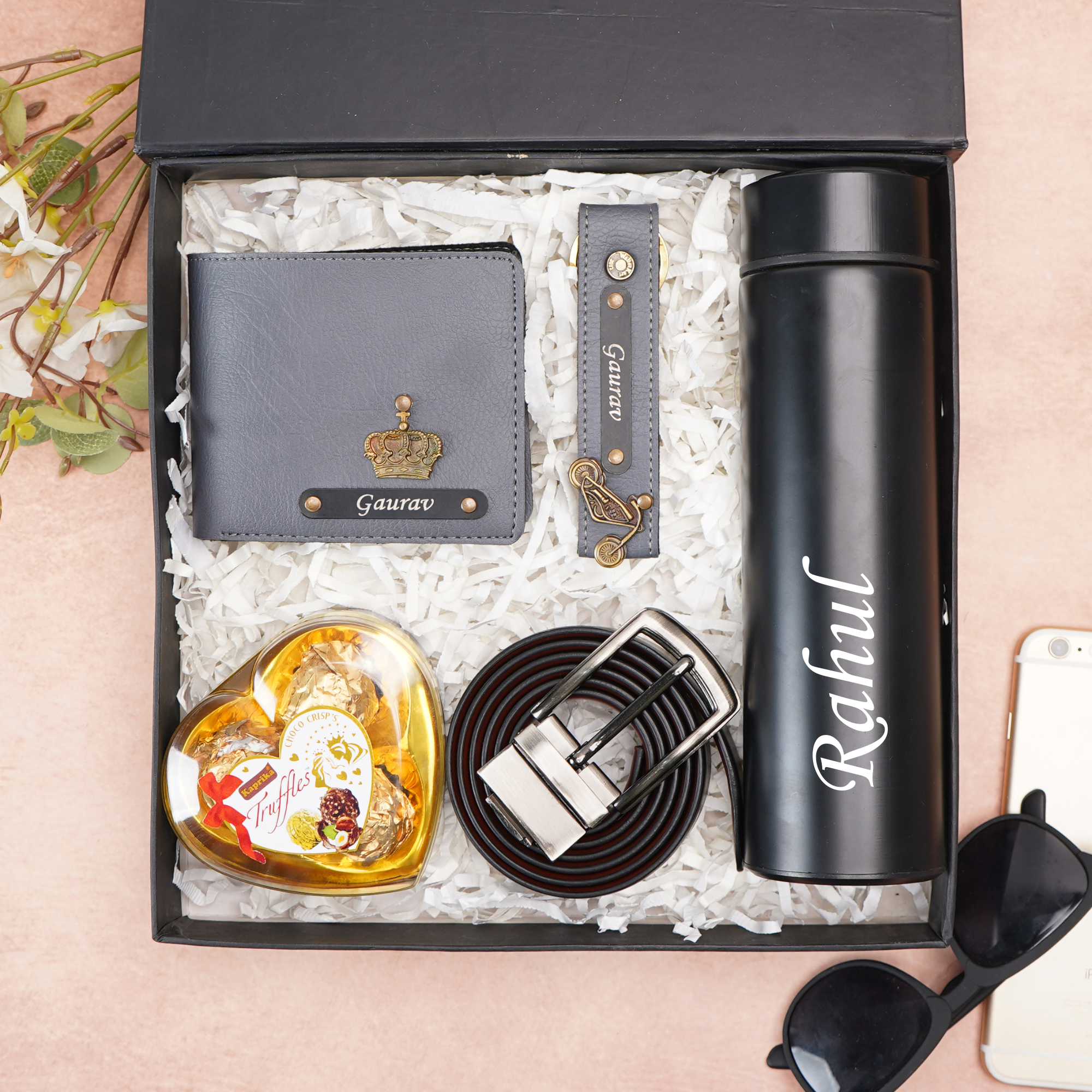 Includes Wallet, Belt, Keychain, Chocolate & Temperature Bottle