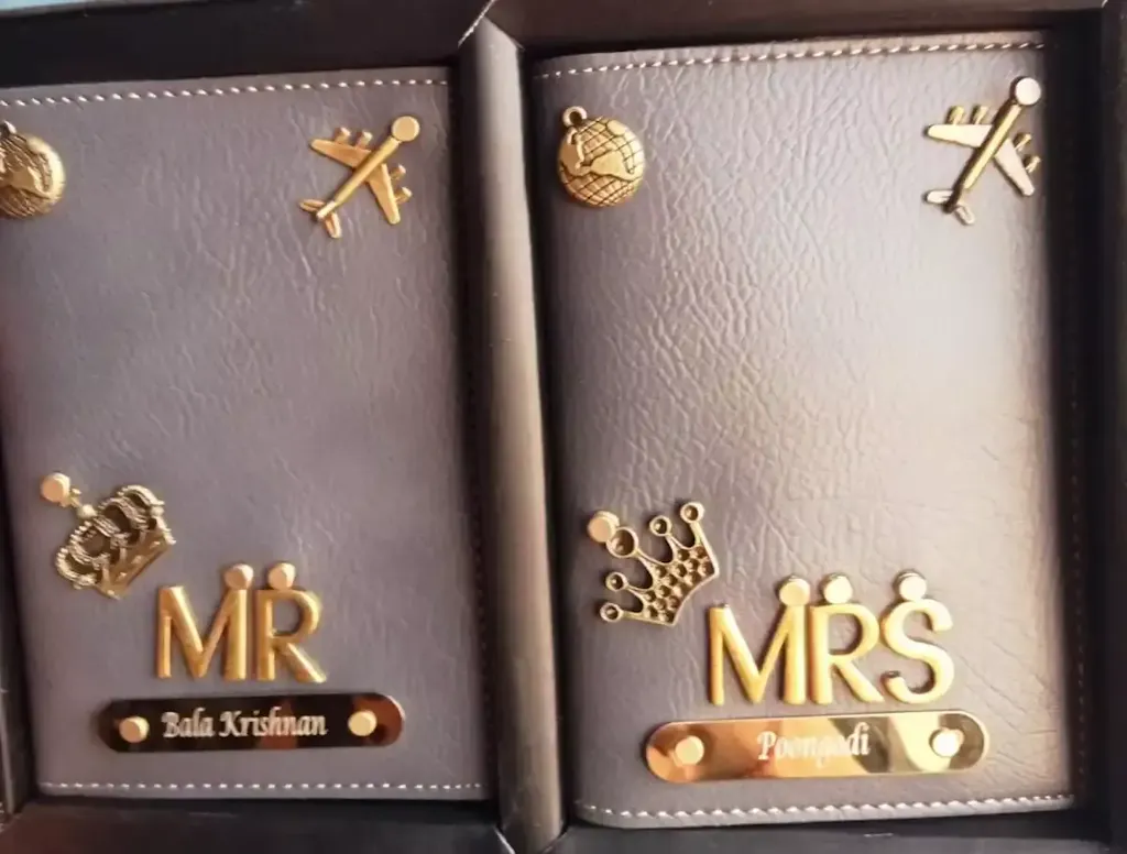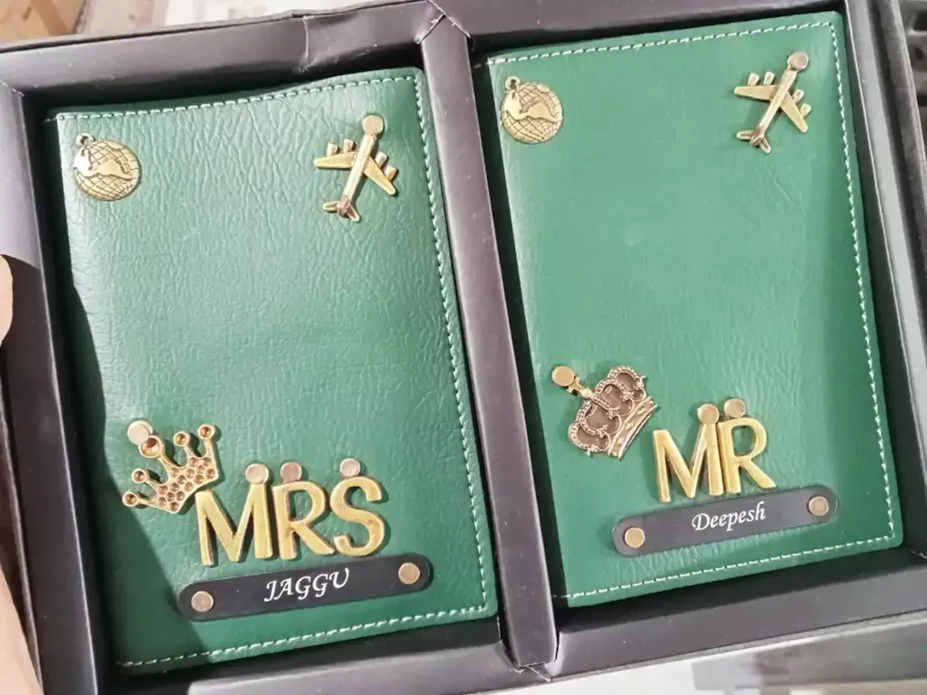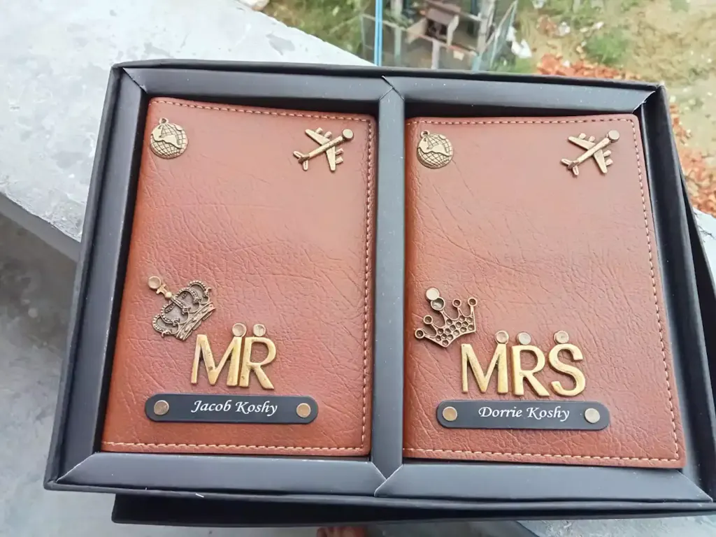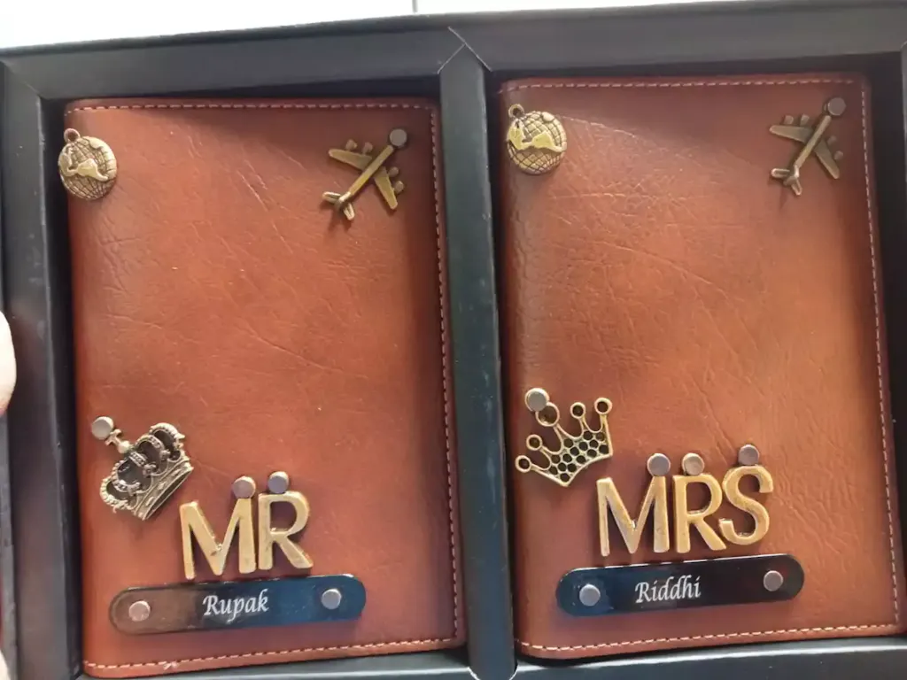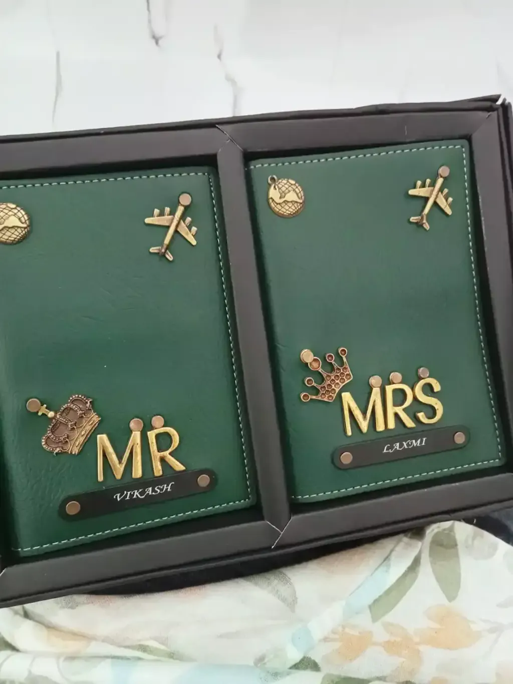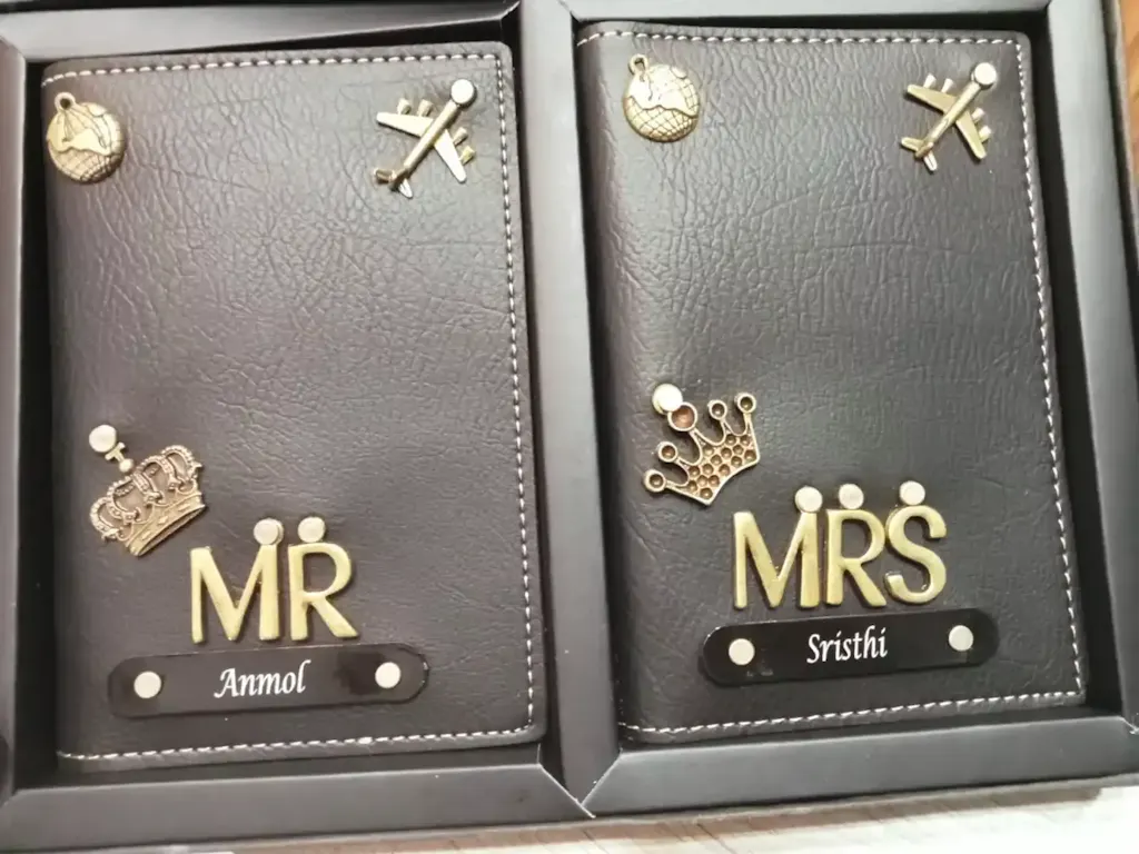 Customised Special Gift for Traveller by Walletkart - Passport Cover Couple Combo With Name & MR and MRS charm