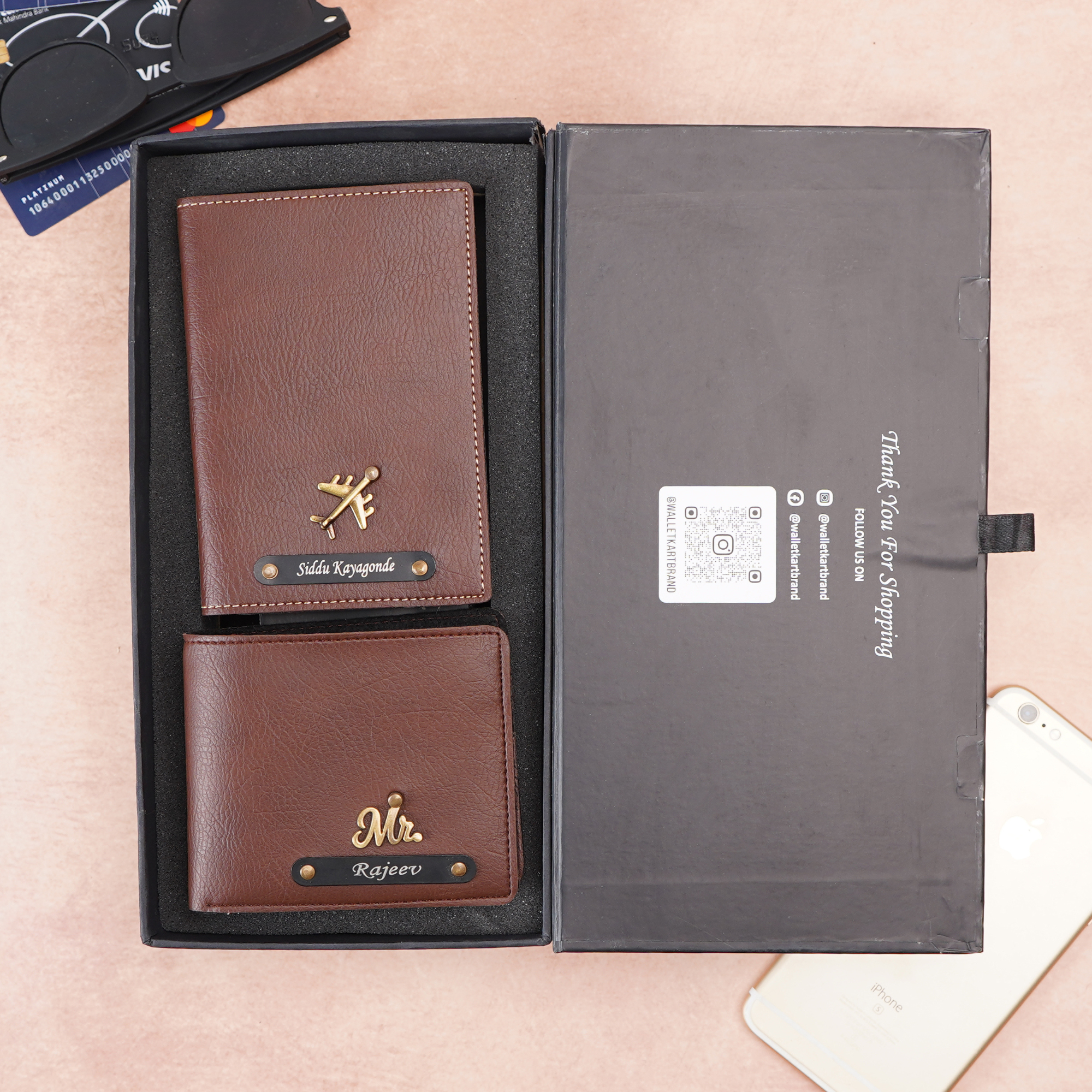 🎁 Personalized Leather 2-in-1 Gift Combo – Men’s Wallet & Passport Cover with Name & Charm