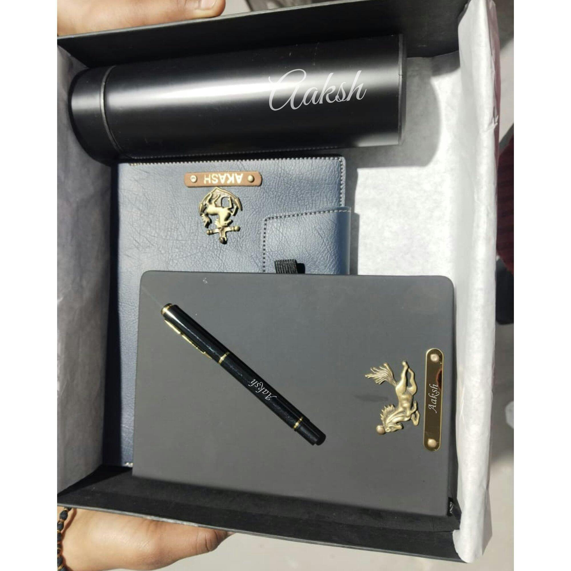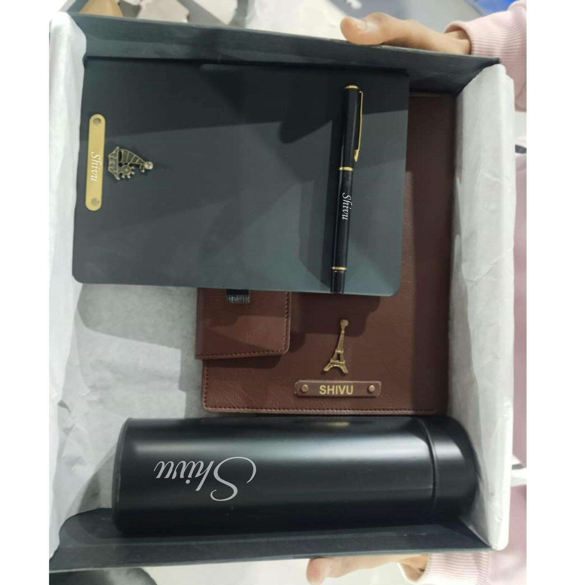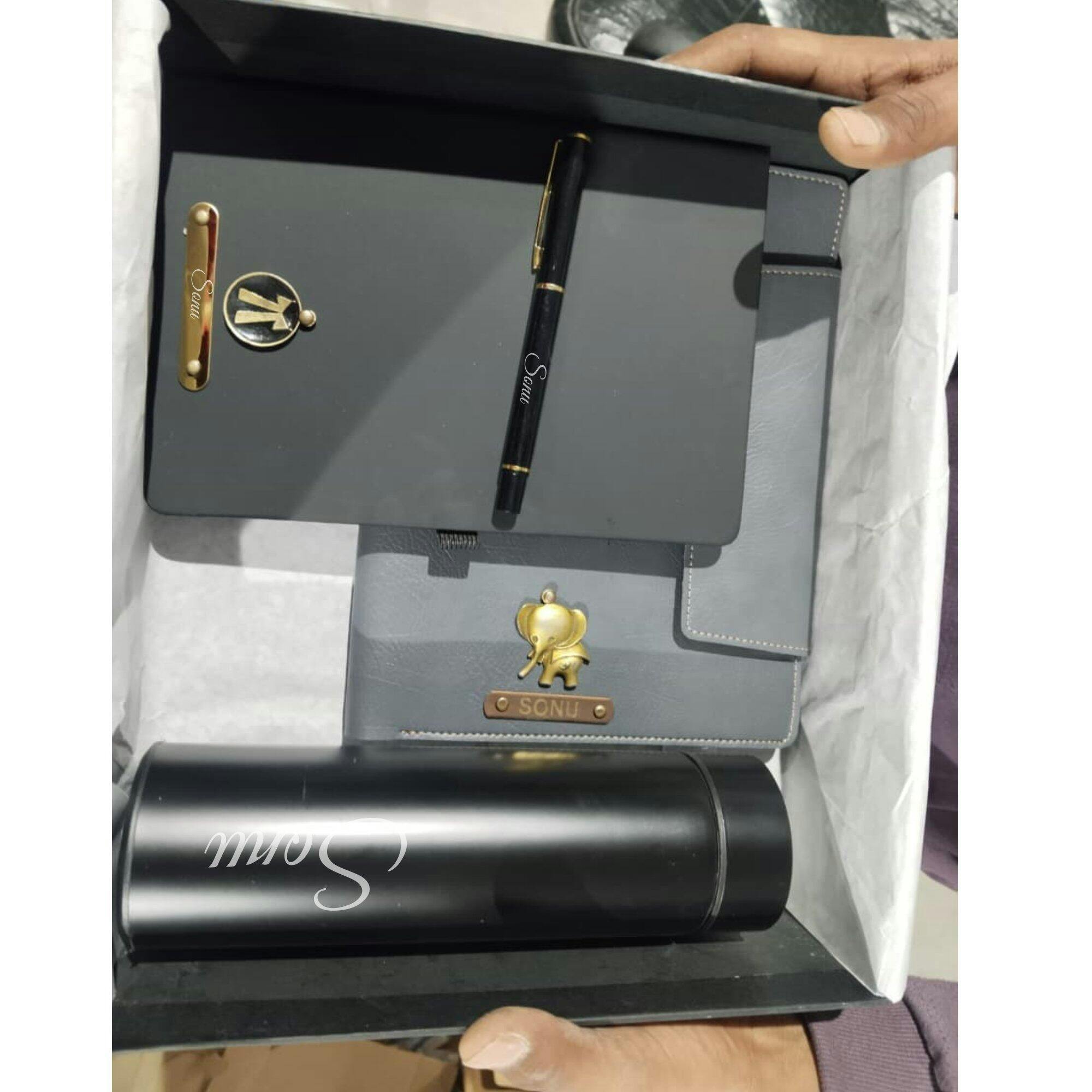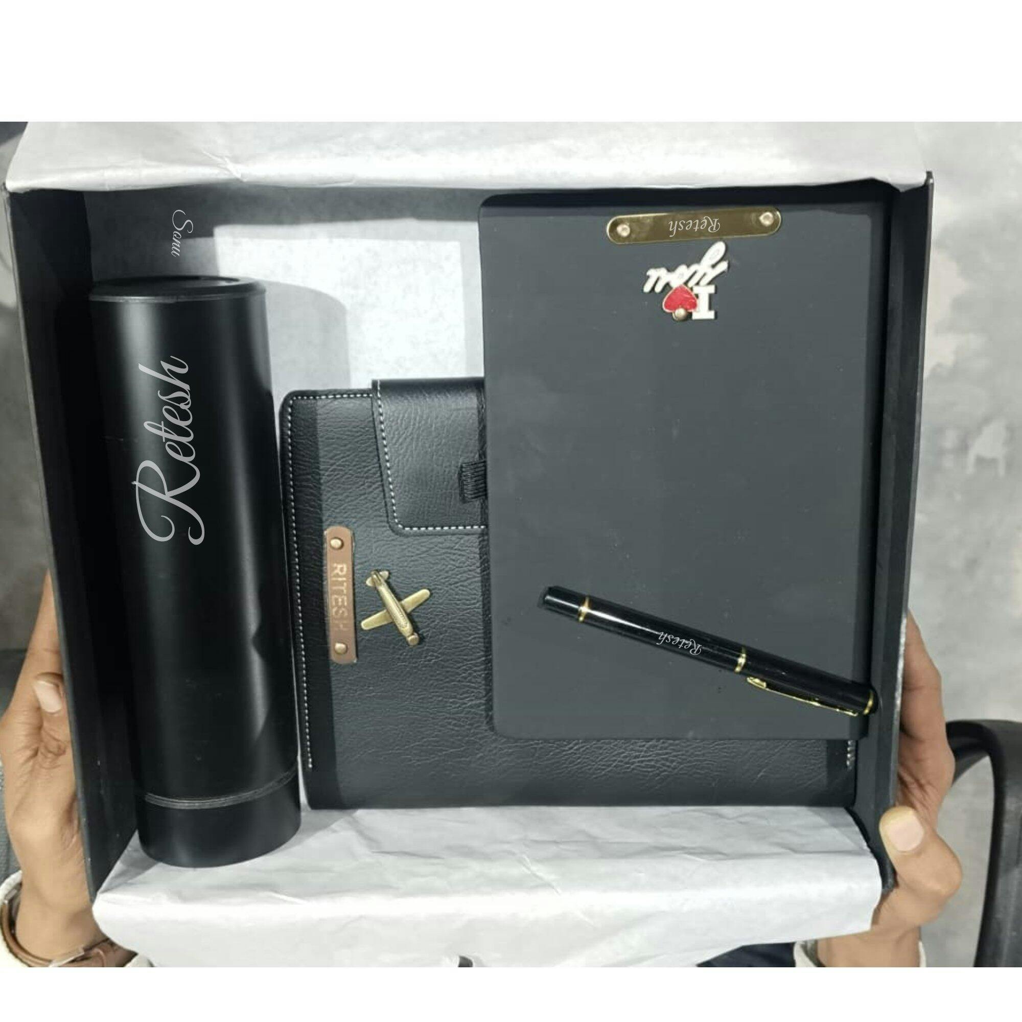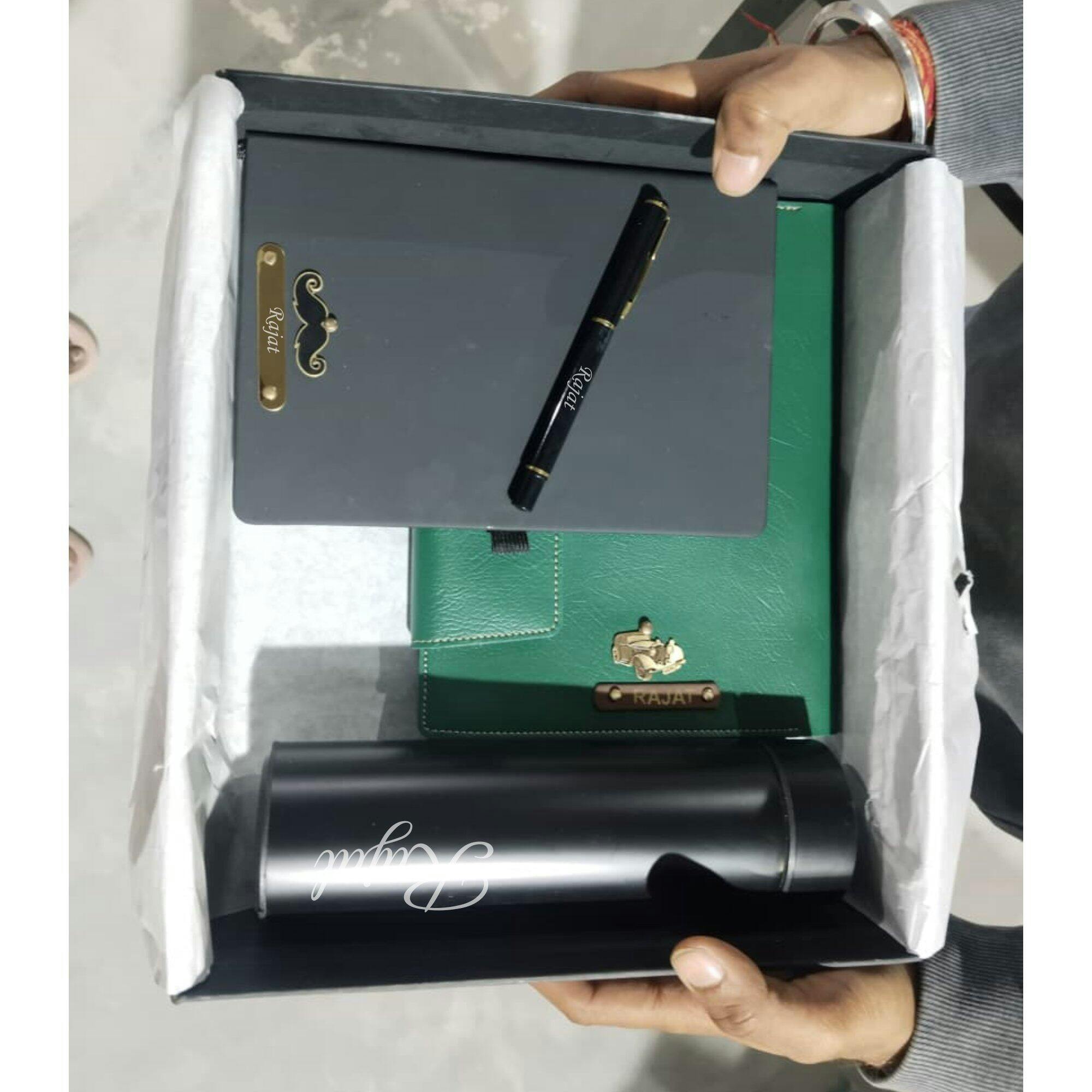 Elegant Leather Diary Holder Bottle & Pen & Diary with Name Engraving – Ideal for Corporate & Personal Gifting