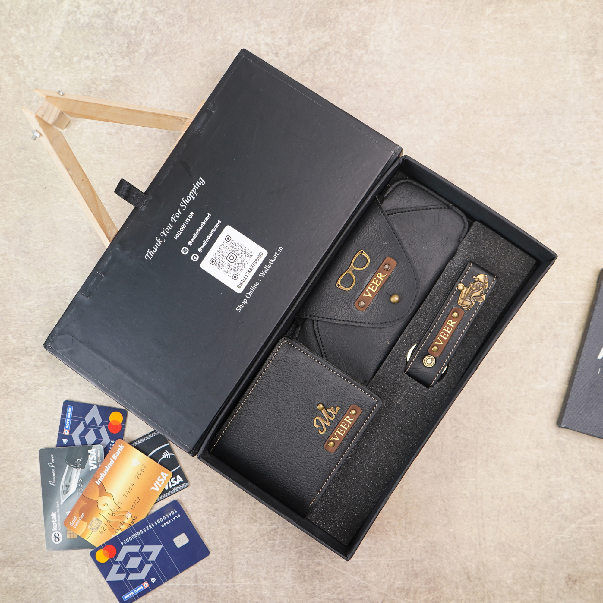 Premium wallet, eyewear case & keychain set