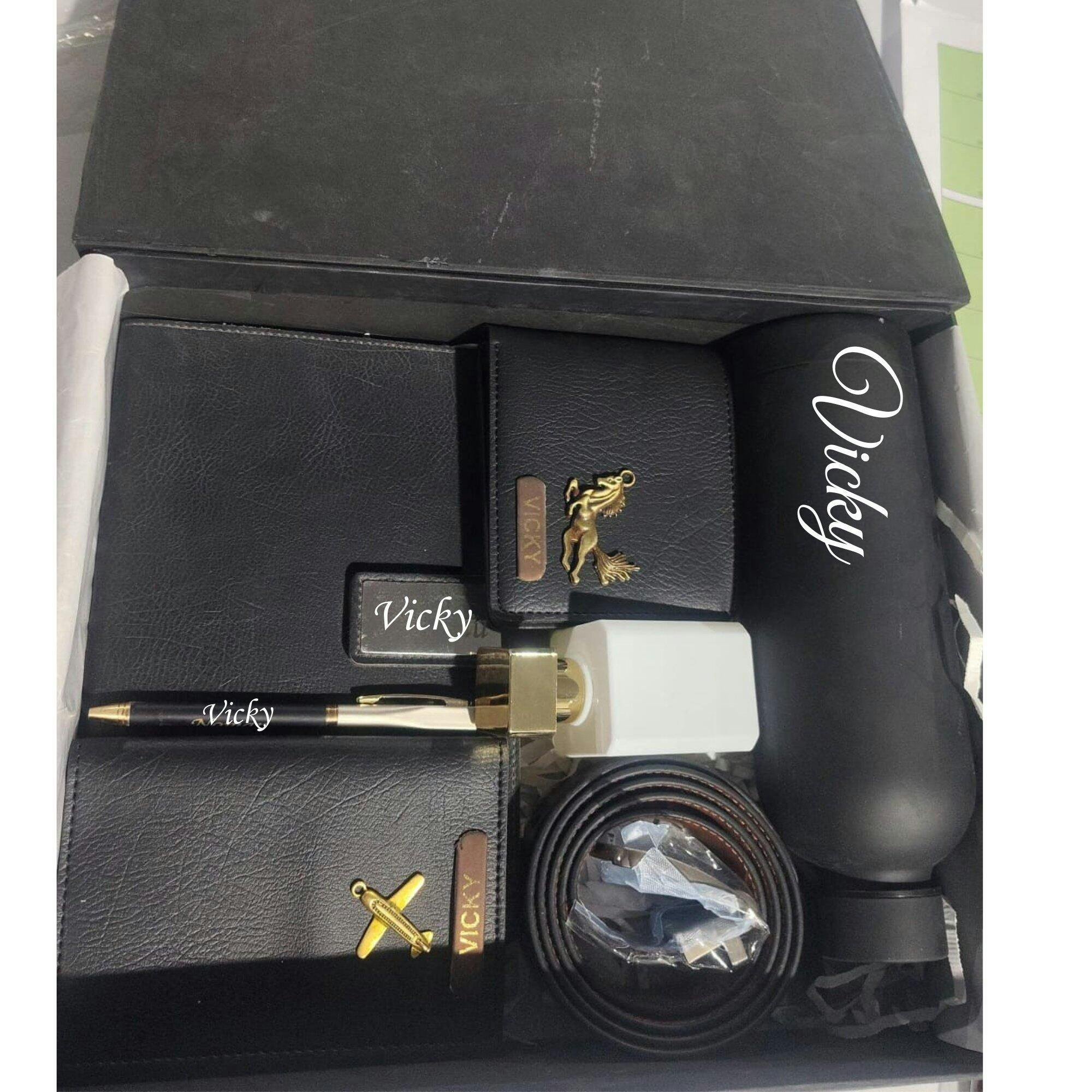 Crafted from high-quality genuine leather and materials, the wallet and diary offer sleek, practical designs for daily use, the passport cover protects travel documents, the pen adds a refined touch, the belt enhances any outfit, the perfume provides a signature scent, and the H2GO bottle keeps drinks hot or cold for hours. Every item combines luxury, utility, and personalized elegance.