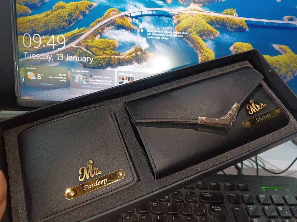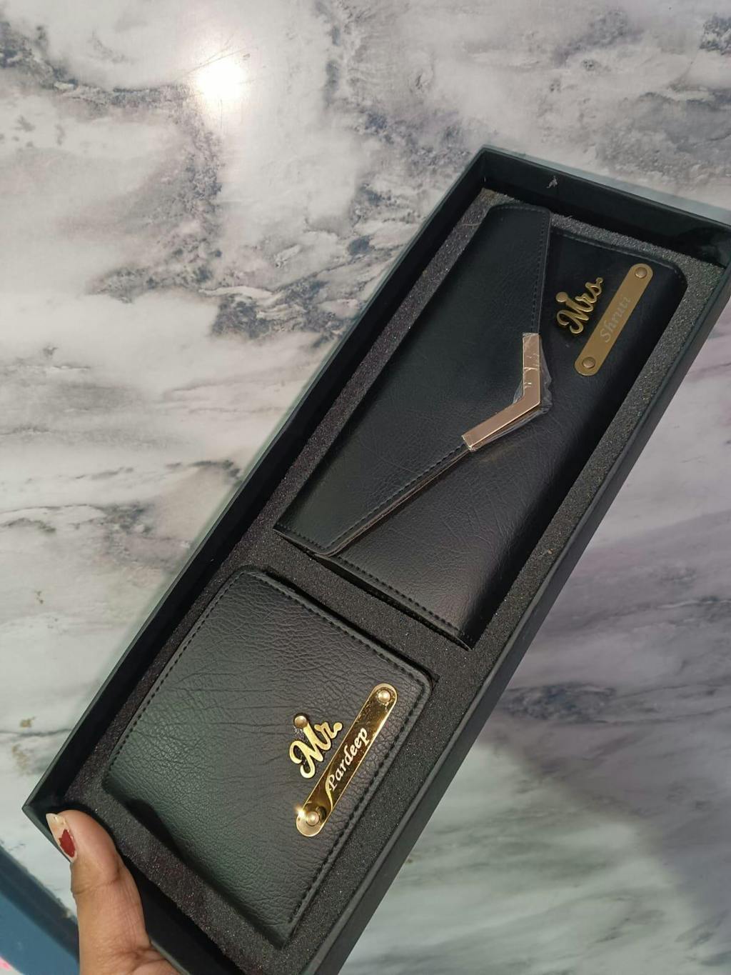 🎁 Personalized Wallet & Clutch Combo – the perfect His & Her Gift Set crafted to celebrate love and togetherness.