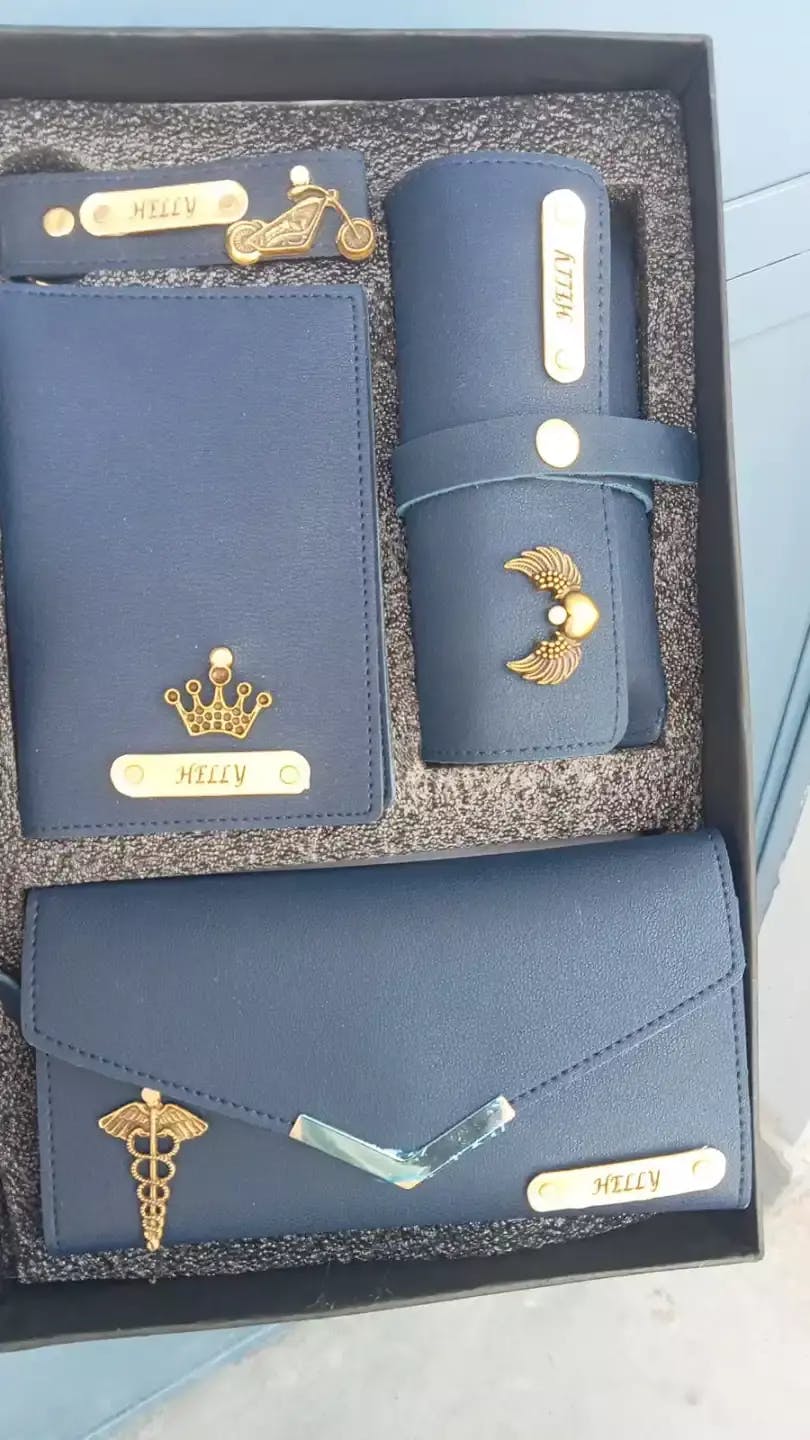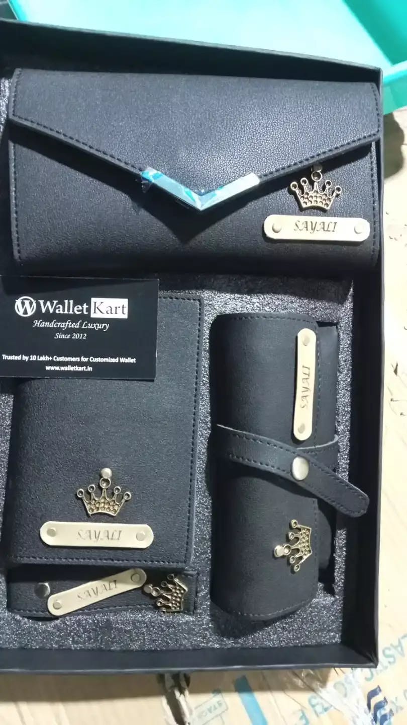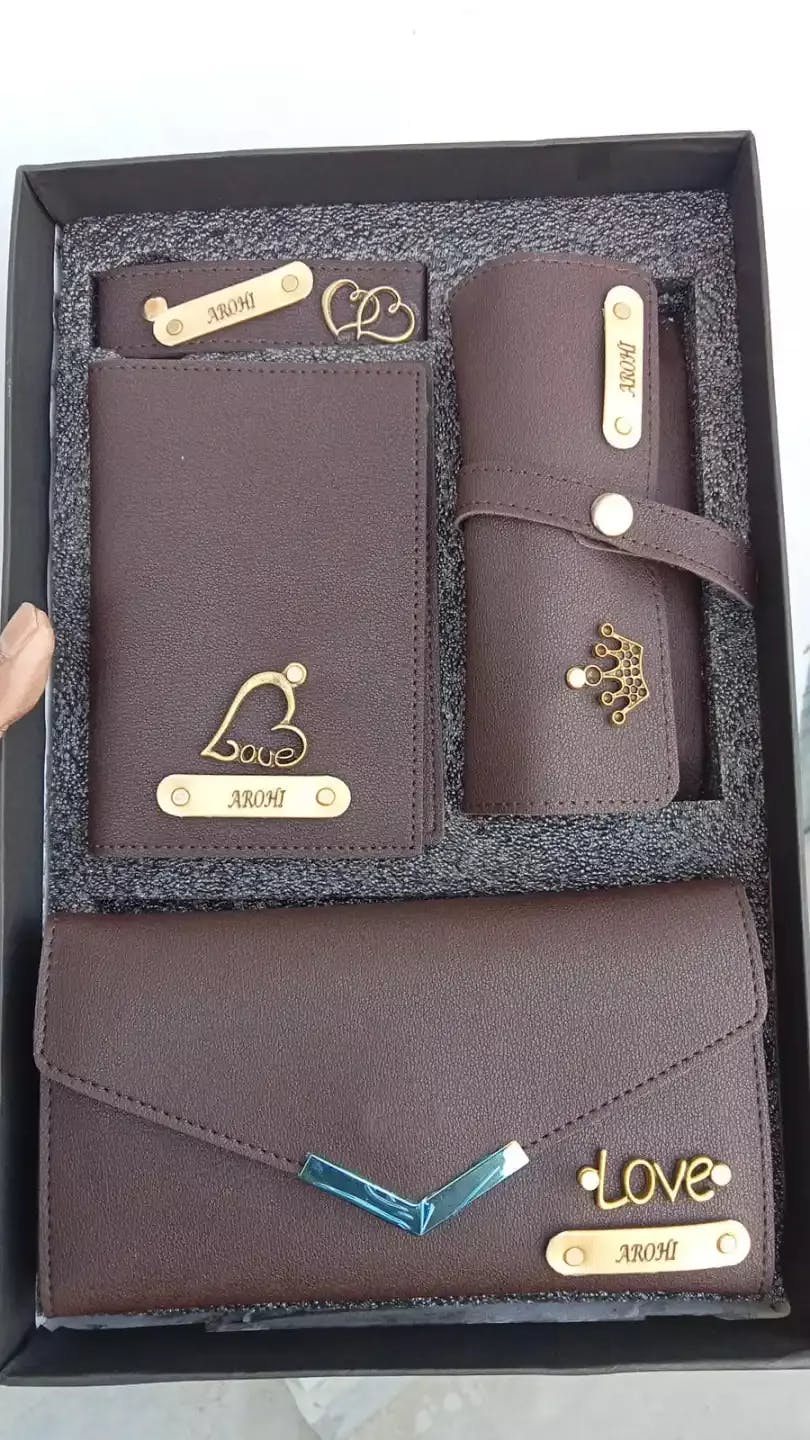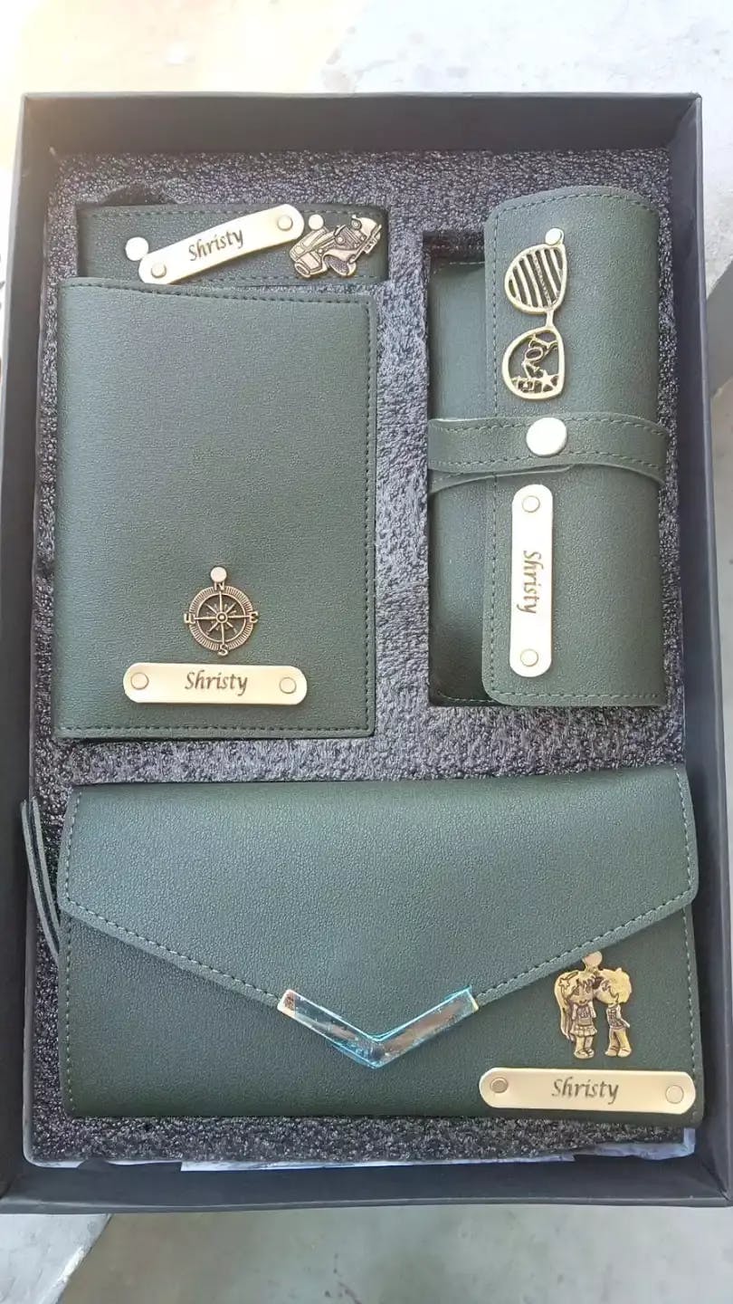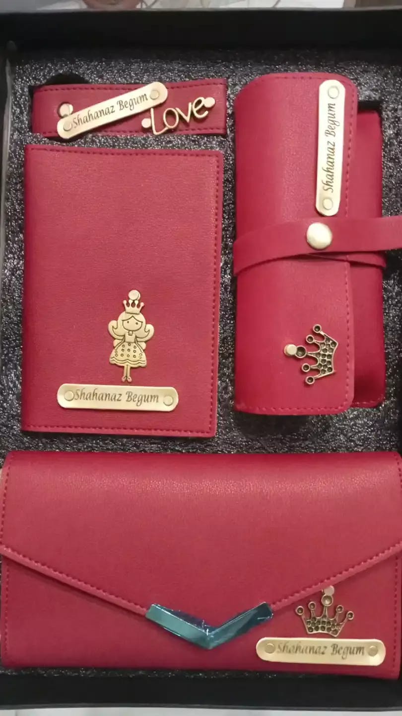 Customised Women's Name Clutch, Passport Cover, Keychain & Eyewear Case ( 4 in 1 Combo)