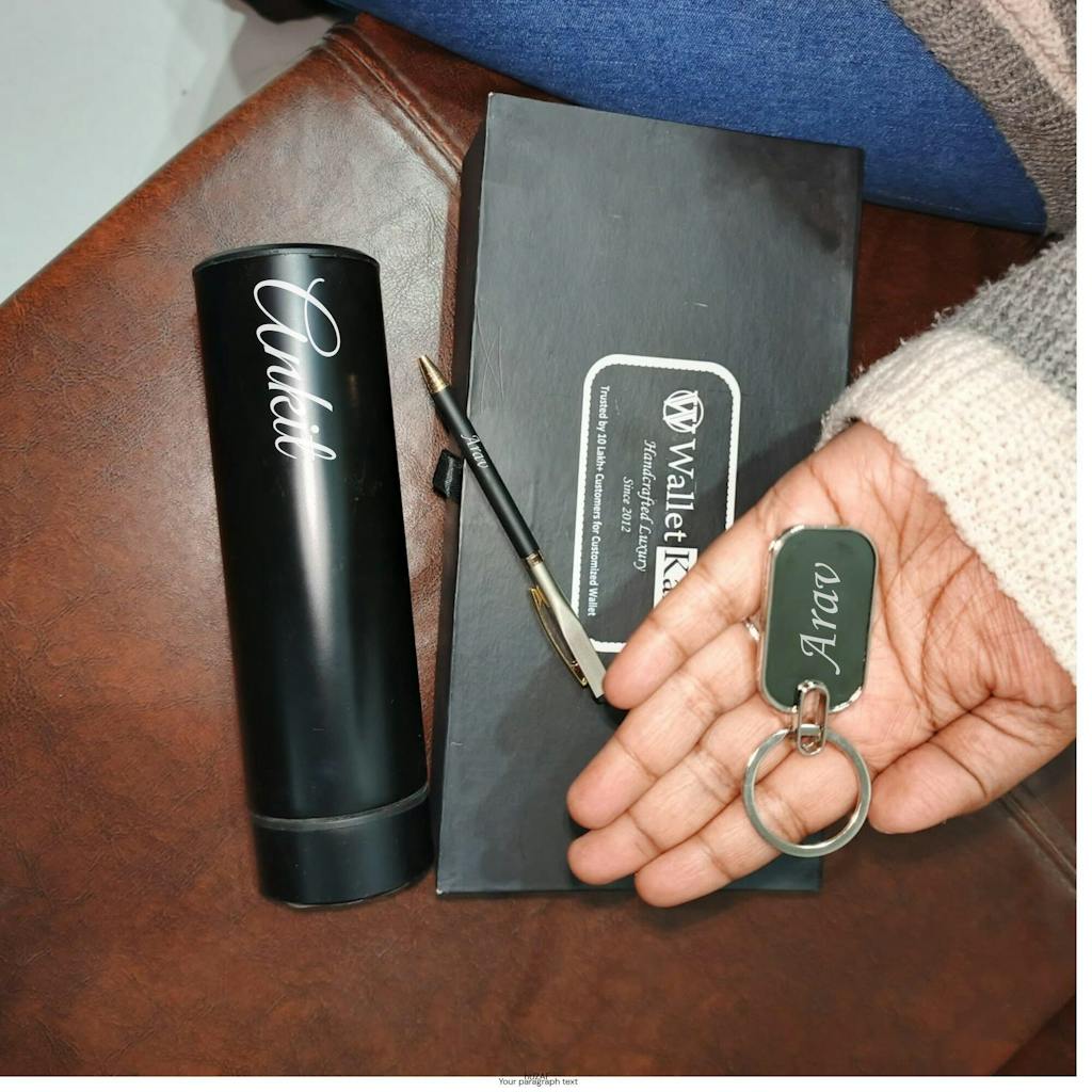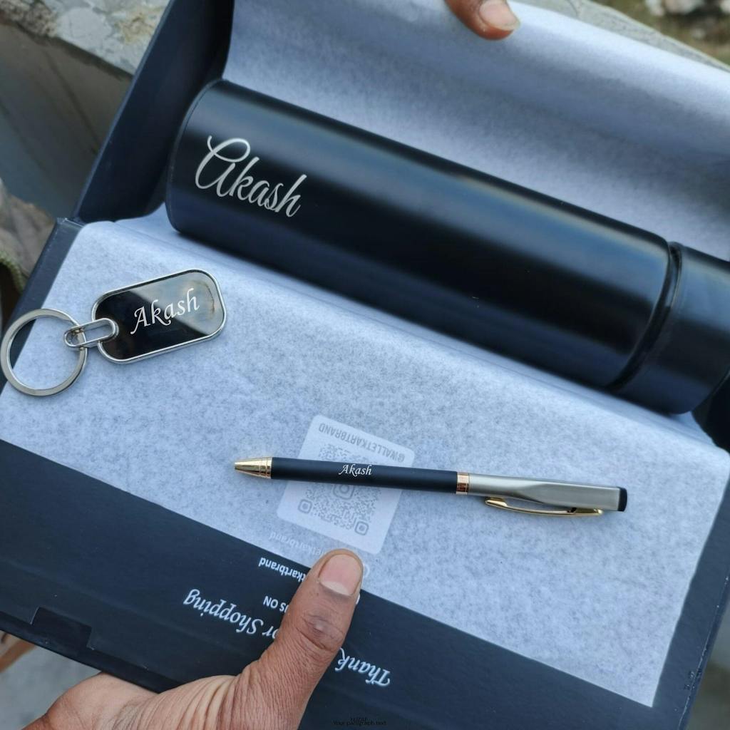 Personalised Men's Bottle, Keychain, Pen Gift Combo BY WALLETKART