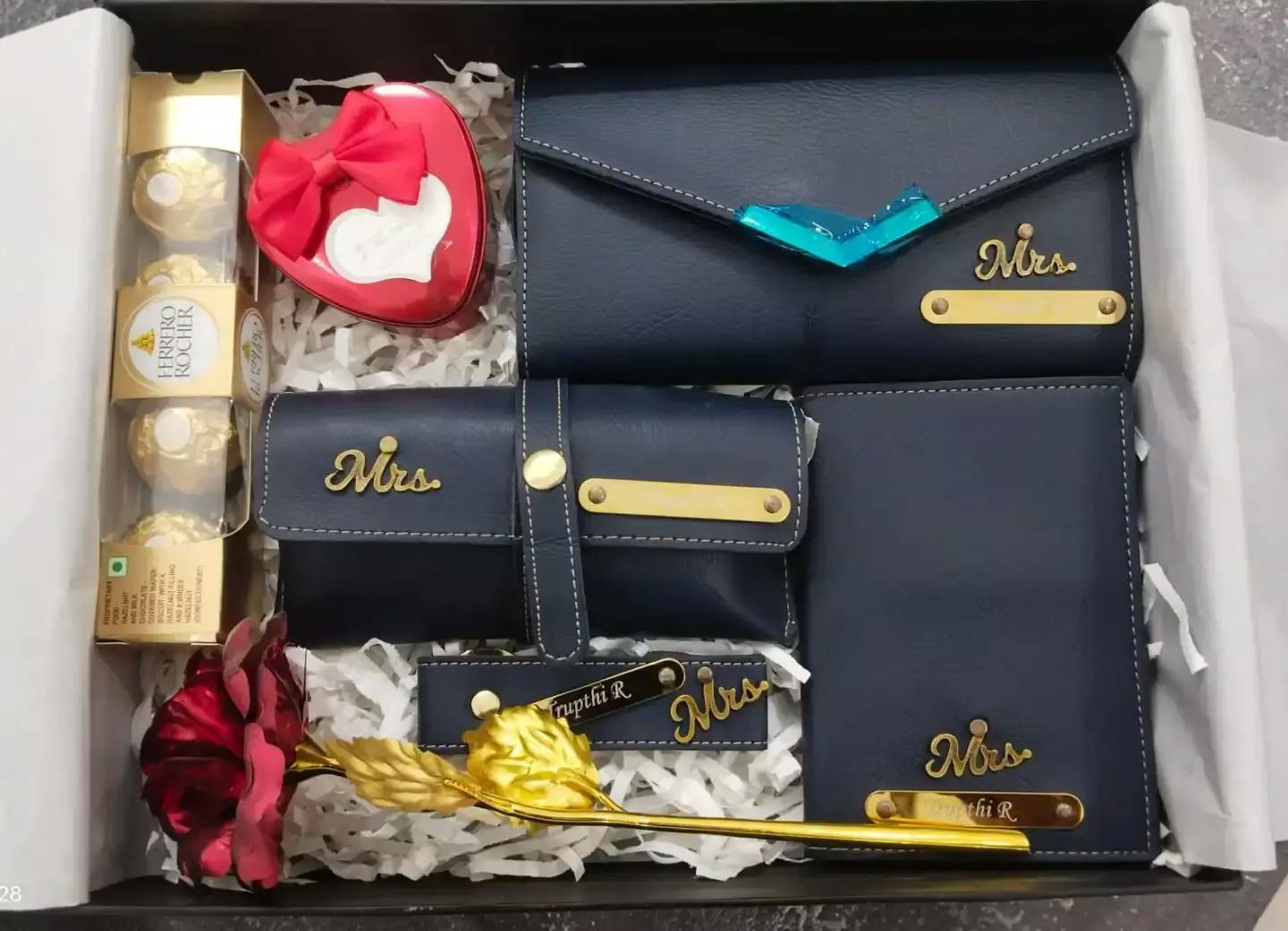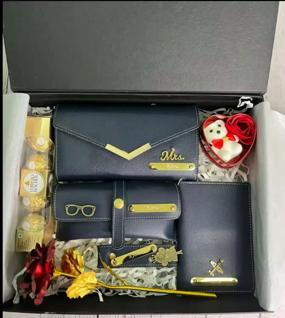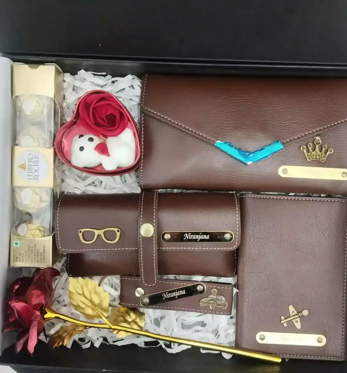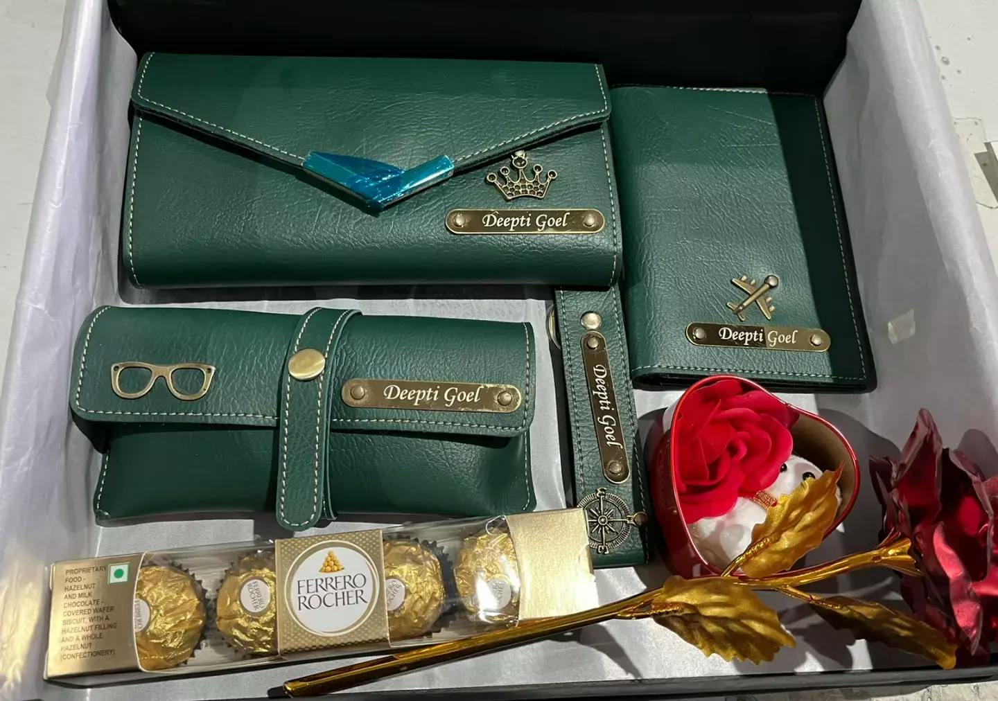 Customized Women's Leather Clutch Keychain, Passport Cover, Eyewear Case, Flower, Chocolate and Teddy (7 in 1 ) Gift combo for Marriages, birthdays, anniversaries, Valentine's Day