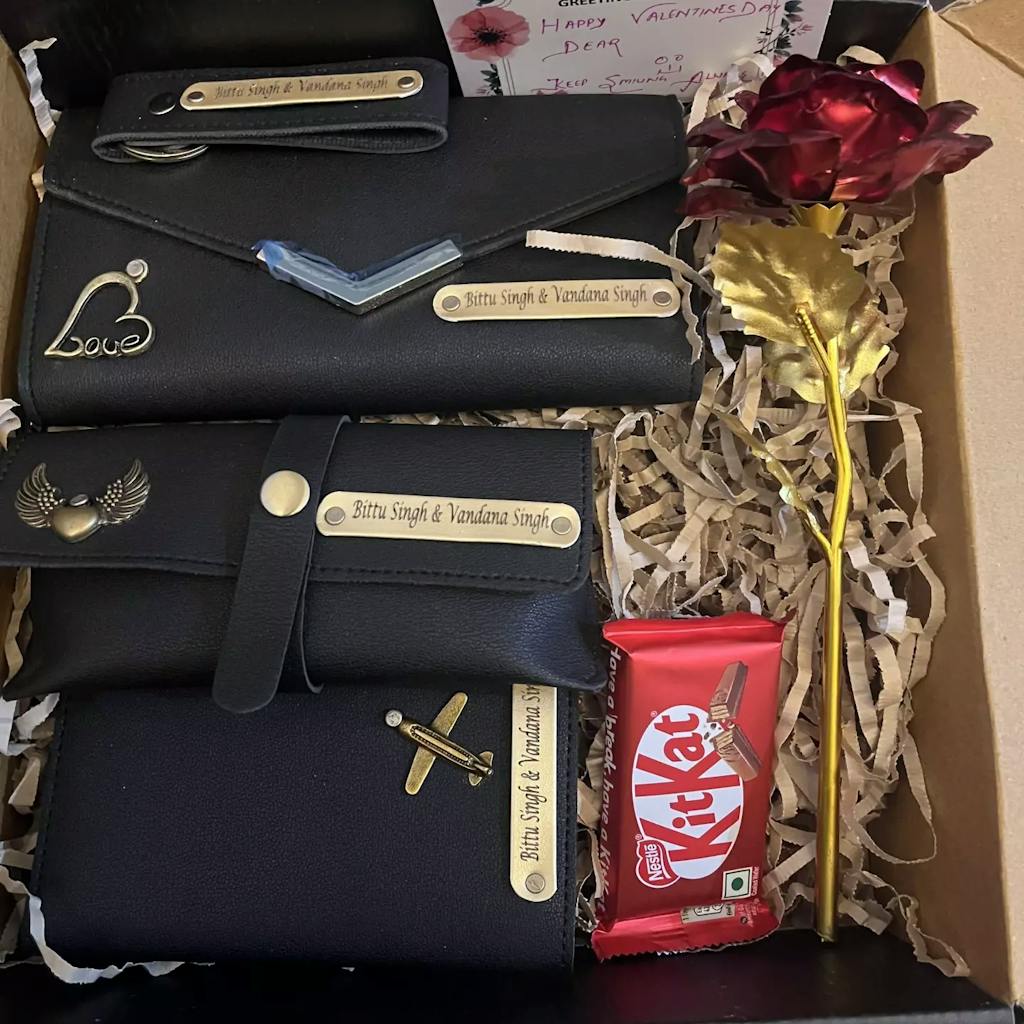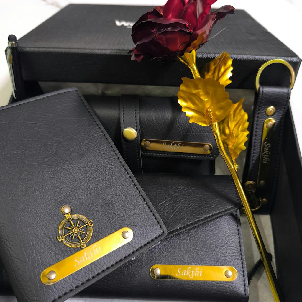 Personalized Women's Clutch, Passport Cover, Keychain, Eyewear Case, Rose Gold Flower, Kitkat and Message Card ( 7 in 1 Combo)