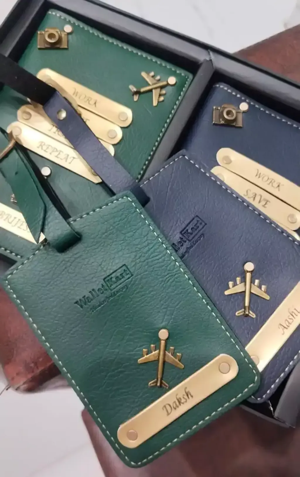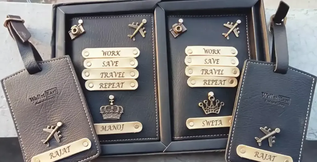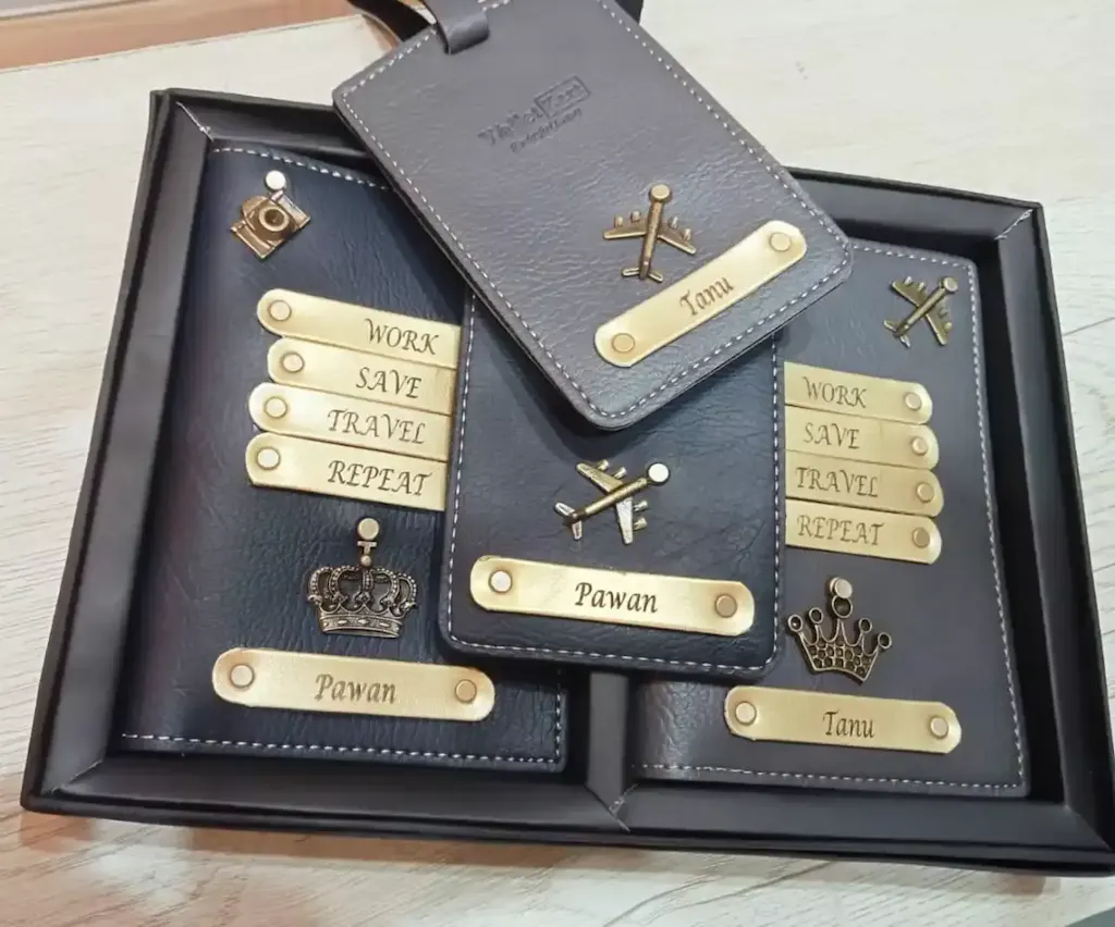 Special Customised Leather Name Passport Cover Combo for Traveller & Get FREE 2 Luggage Tag by Walletkart (Pack Of 4)