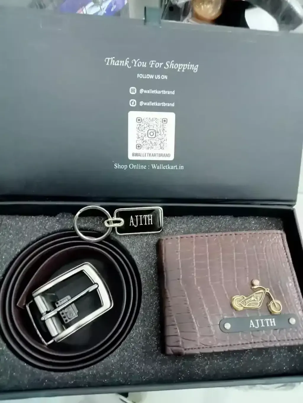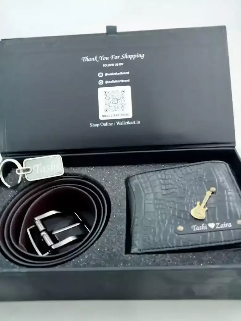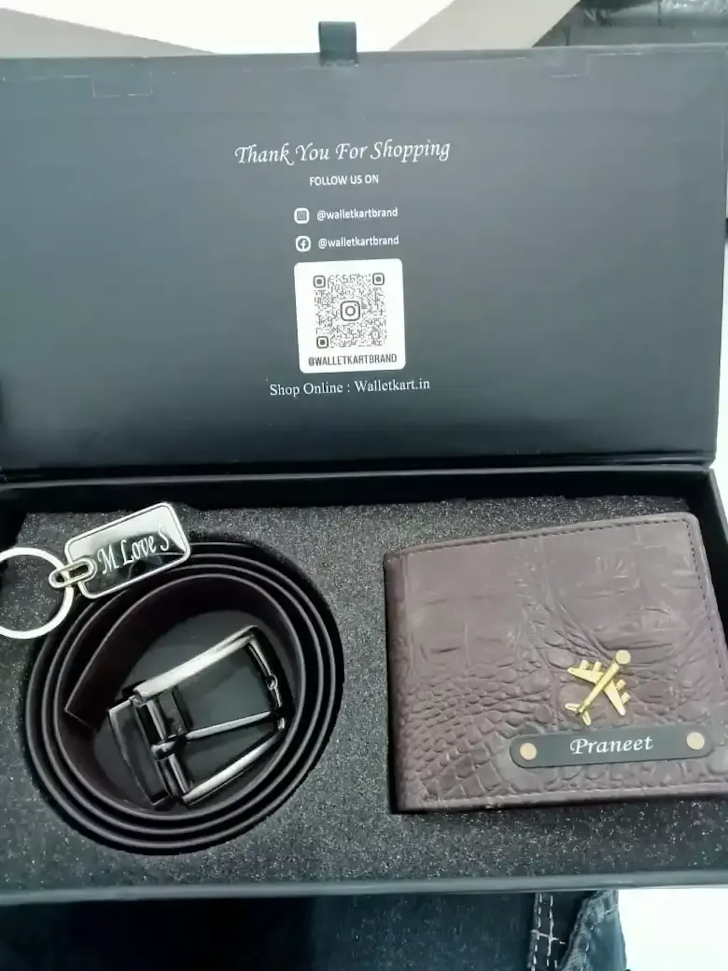 Personalized Crocodile Leather Name Wallet, Keychain, and Belt Combo definitely checks all the boxes for a thoughtful and stylish present. Here's a little description you could use if you're listing it online, giving it as a gift, or just want to add a nice touch: