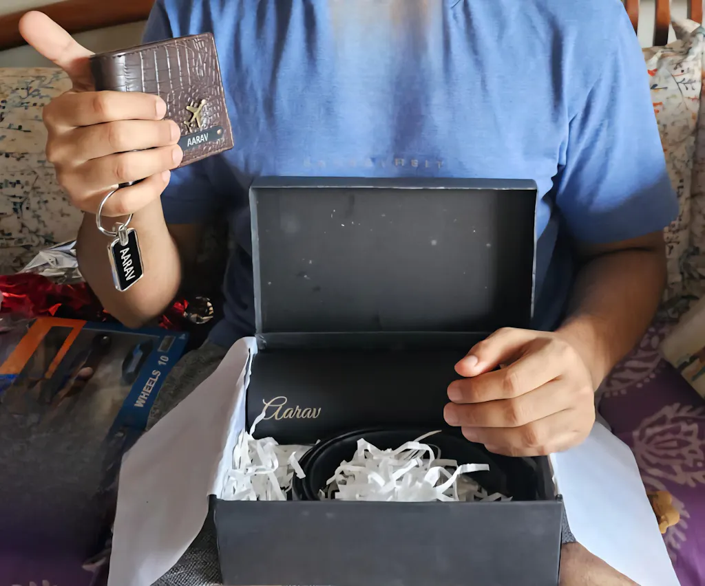 Make every birthday and anniversary unforgettable with the Personalized Croco Texture Men's Wallet Keychain and Belt | Best Customized Gift Combo for Boyfriend Friend Husband Father & Son—a thoughtful blend of luxury, craftsmanship, and personal touch. Designed for men who value refined style, this customised gift set is perfect for celebrating meaningful moments with your boyfriend or husband.