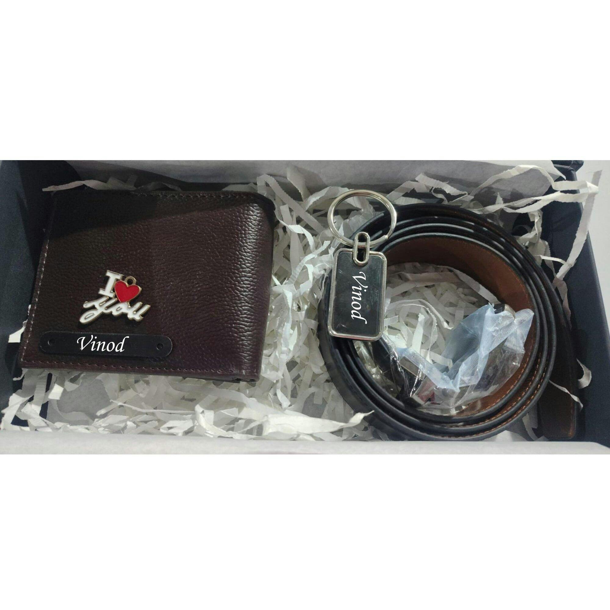 Executive Leather Name Wallet Keychain and Belt