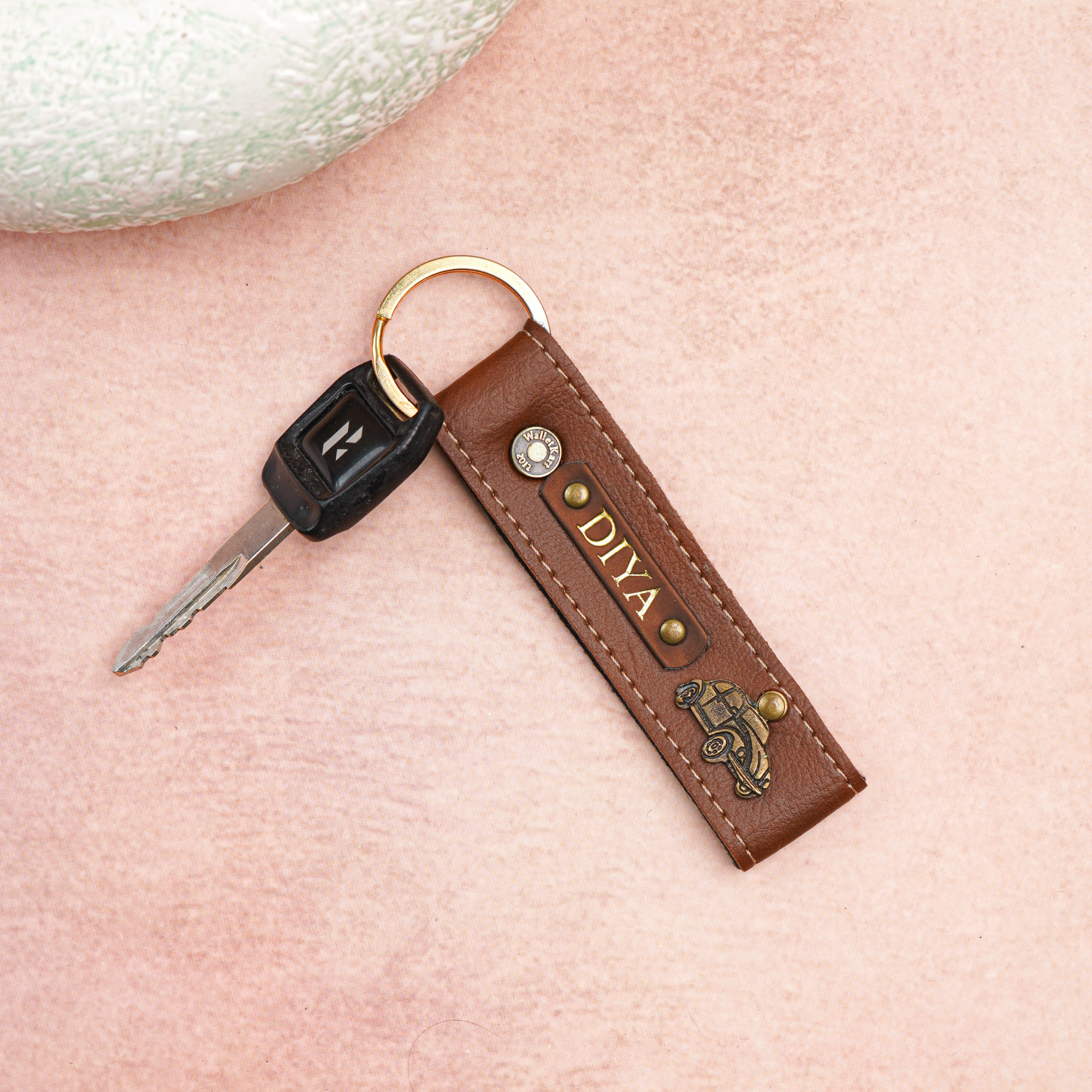 Best Personalized Leather Keychain Name Emboss On Leather Strip Gift Option for Men/Women by Walletkart