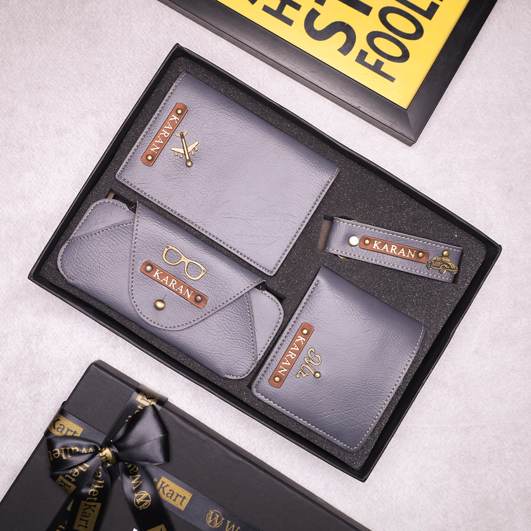 Best Customised Leather Name Wallet Keychain Passport cover And Eyewear case ( 4 in 1 Combo) Option for Men by Walletkart