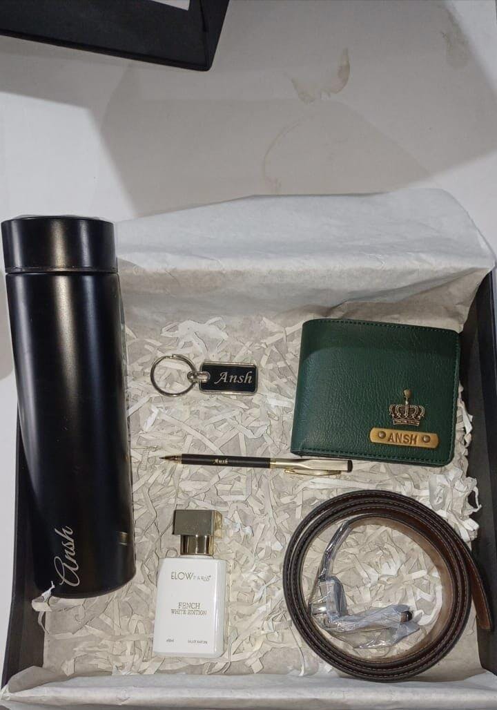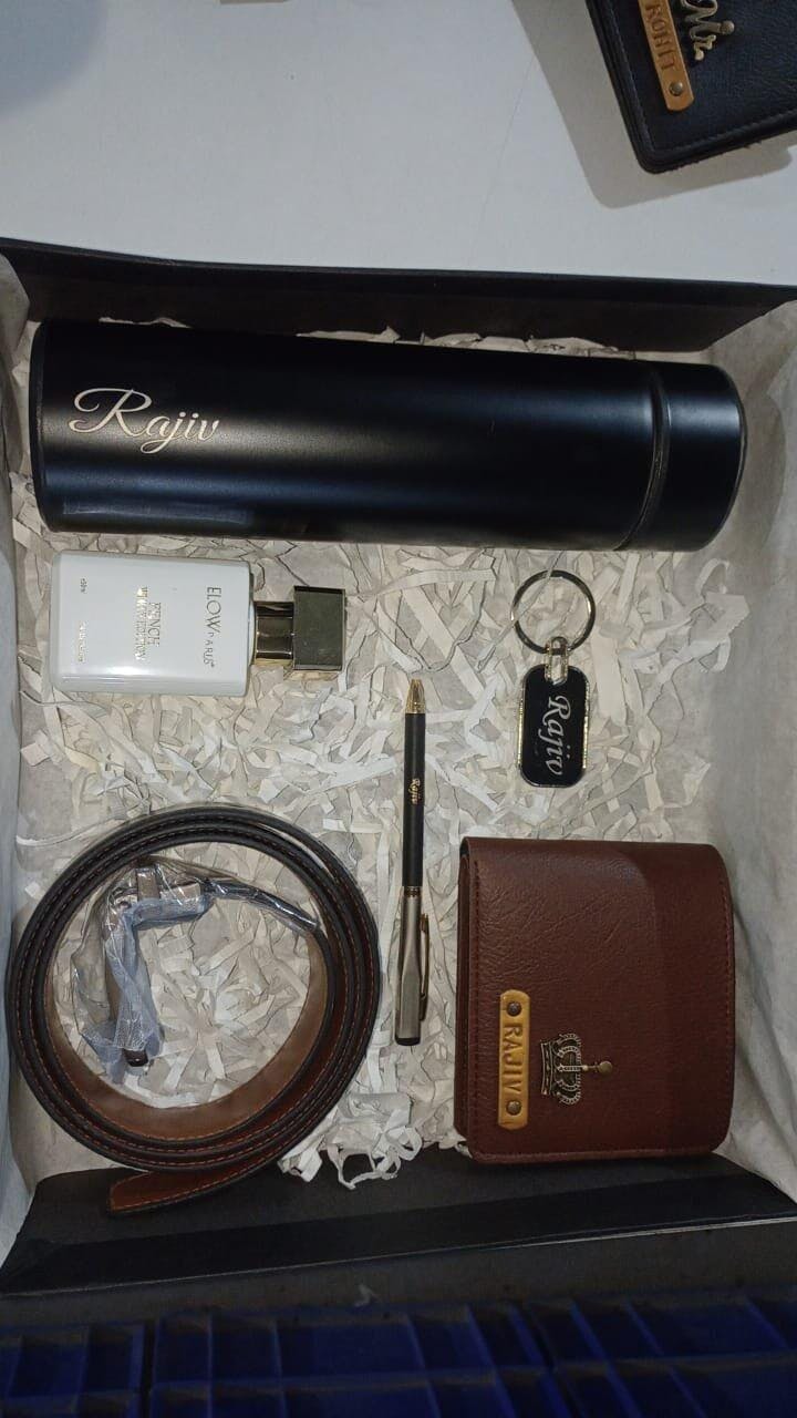 Includes Wallet, Belt, Metal Keychain, Pen, Perfume & Temperature Bottle