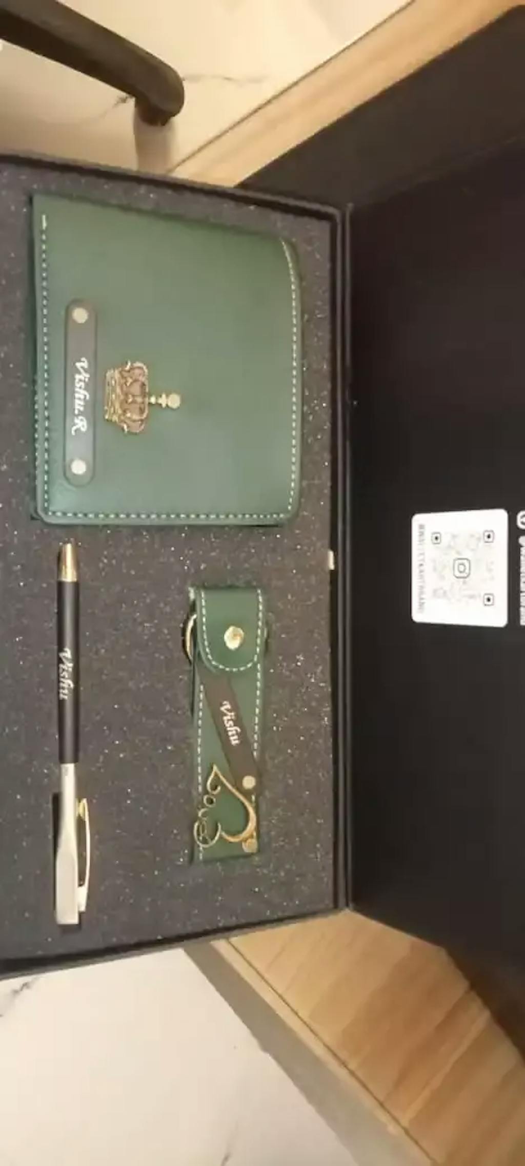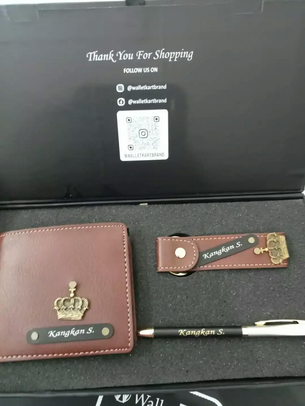 Crafted from premium-quality materials, the wallet offers a sleek and practical design for daily use, the pen adds a refined touch to work or study, and the keychain keeps essentials organized in style. Thoughtfully curated, this combo blends utility, durability, and personal sentiment.