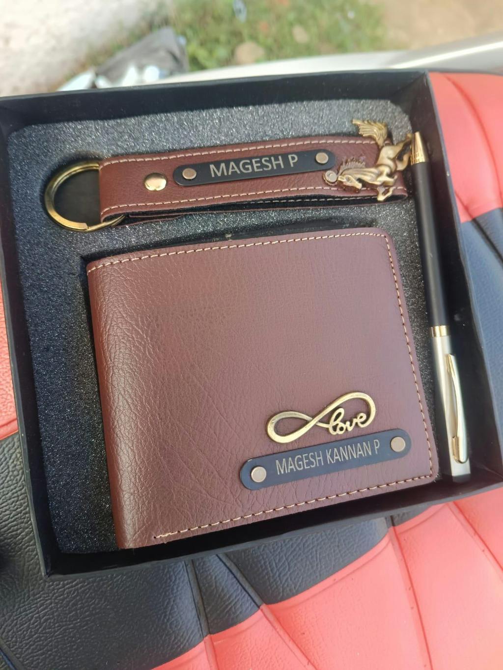 Stylish Men's Gift Set – Name Engraved Wallet, Pen & Keychain