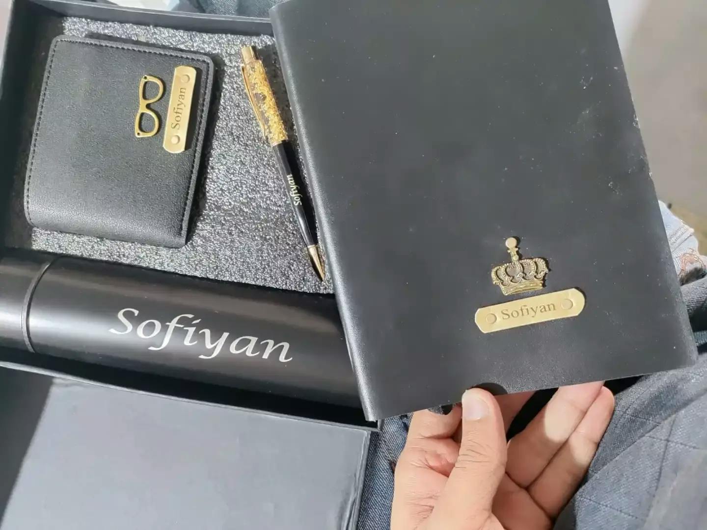 Personalised Men's Wallet, Diary, Pen and Temperature Bottle with Name & Charm By walletkart