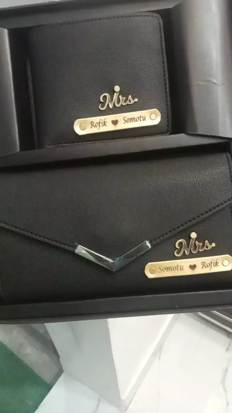 You can enter your name or initials during checkout. You’ll also be able to choose the charm or symbol you’d like on your wallet..