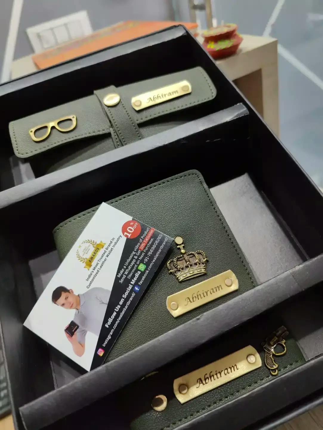 Customized Leather Name Wallet, Keychain & Eyewear Case with Name & Charm